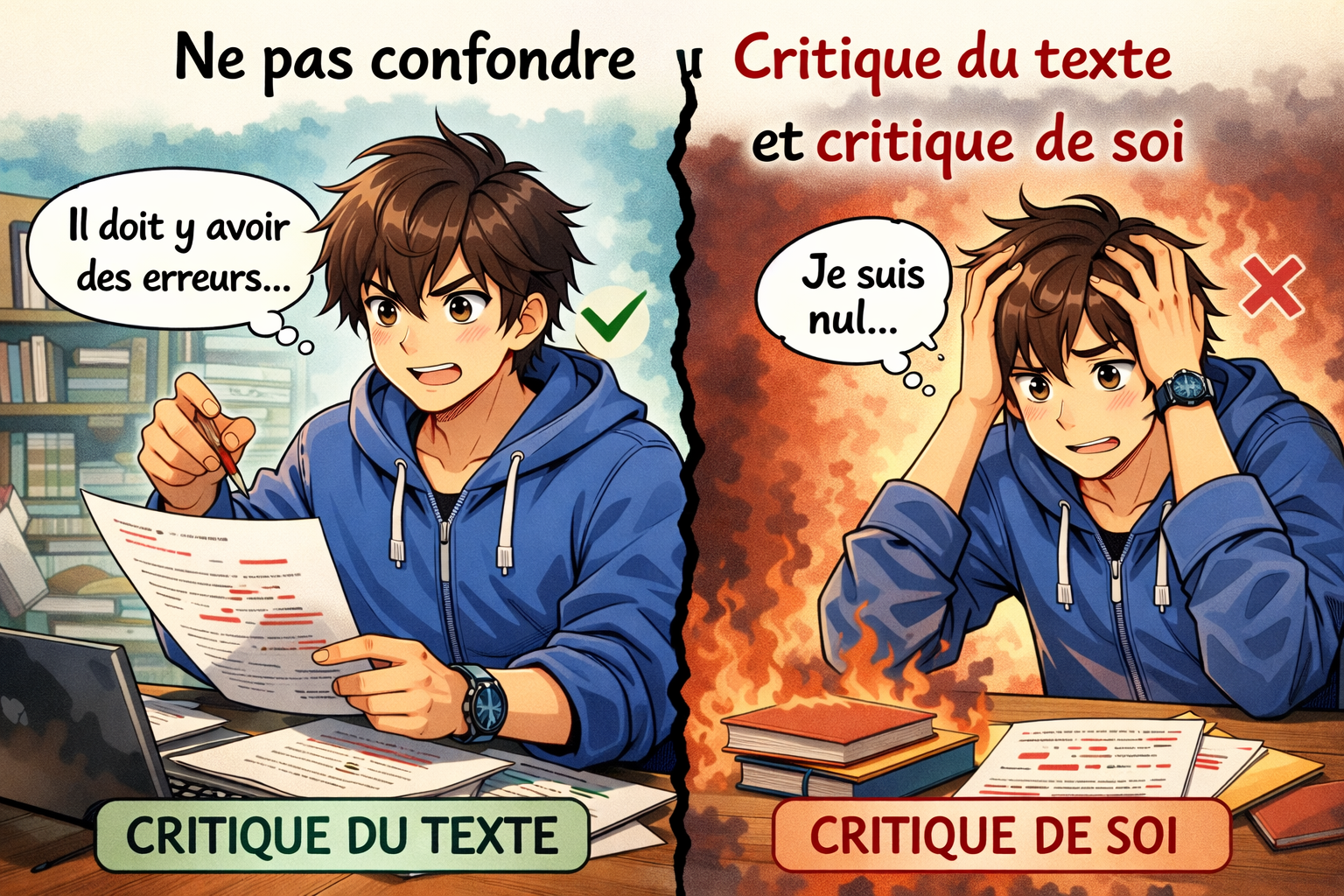 ne pas confondre critique du texte et critique de soi